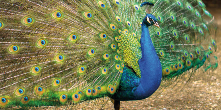 Tavus kuşlarının uzun tüylerindeki göz bebeğine benzeyen bölümlerden zayıf lazer ışığı yayılabiliyor.